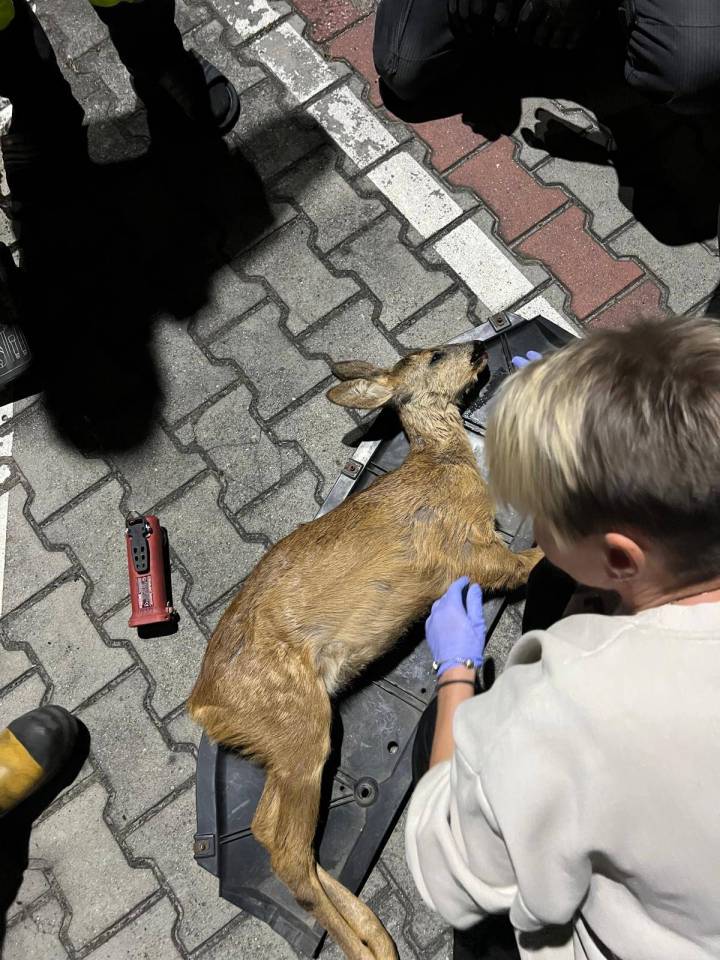 Po udanej akcji ratunkowej sarna została przekazana przybyłemu na miejsce lekarzowi weterynarii, który ocenił jej stan zdrowia i zdecydował o dalszym postępowaniu.