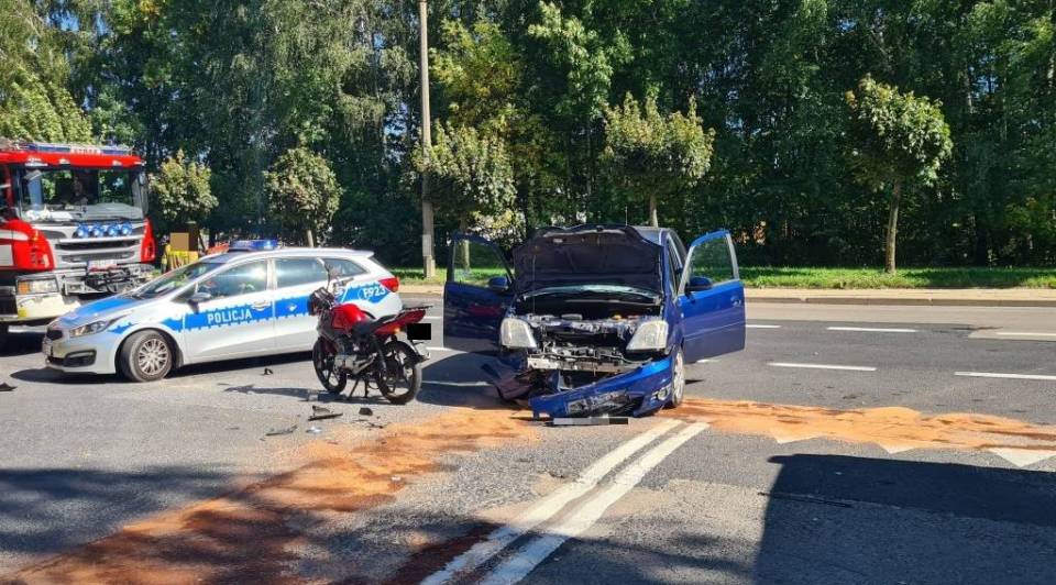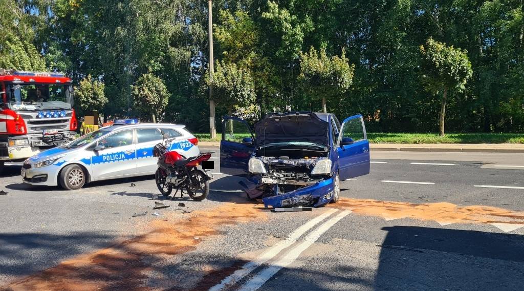 Do zdarzenia drogowego doszło w sobotę, 20 września, po godzinie 12:00, na skrzyżowaniu ulic Cmentarnej i Al. Włókniarzy w Bełchatowie. Dyżurny jednostki policji został powiadomiony o wypadku drogowym z udziałem dwóch samochodów osobowych oraz motocyklisty.