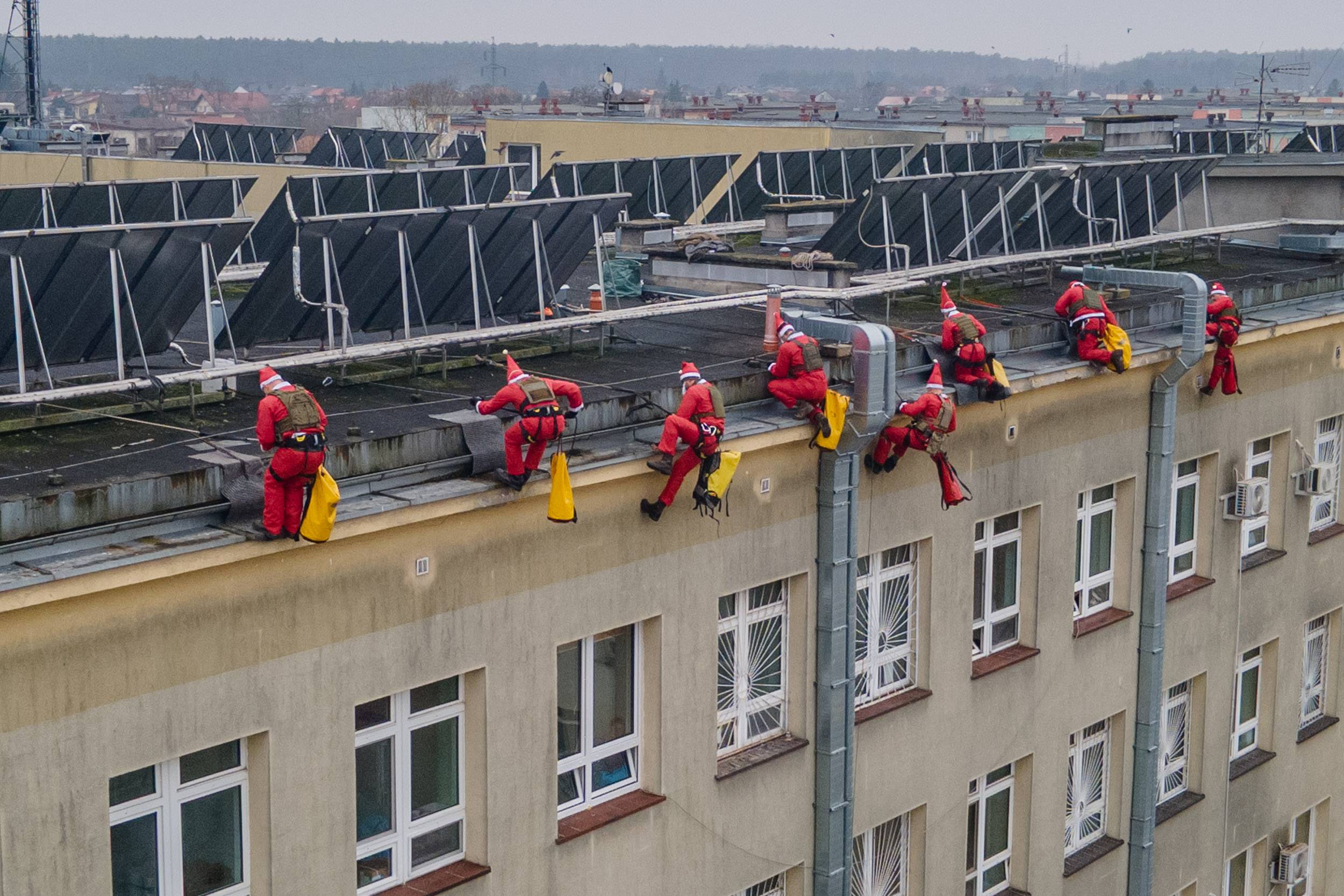 Osiem czerwonych postaci z brodami, dzwoneczkami i workami pełnymi prezentów zjeżdżało po linach z dachu Powiatowego Centrum Zdrowia w Tomaszowie Mazowieckim, wywołując na twarzach dzieci zachwyt, niedowierzanie i szerokie uśmiechy. Ten niezwykły widok 6 grudnia już po raz drugi stał się częścią mikołajkowej tradycji organizowanej wspólnie przez żołnierzy 25. Brygady Kawalerii Powietrznej oraz Wodne Ochotnicze Pogotowie Ratunkowe w Tomaszowie.