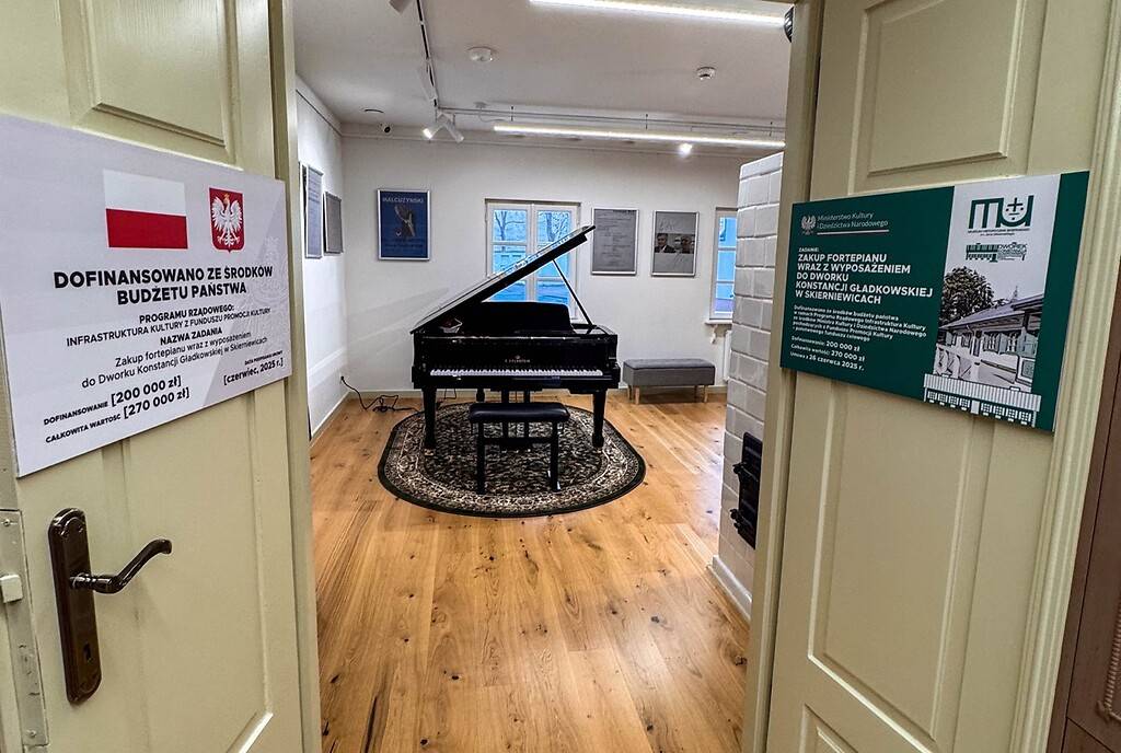 Zakup zrealizowano w ramach projektu „Zakup fortepianu wraz z wyposażeniem do Dworku Konstancji Gładkowskiej w Skierniewicach", dofinansowanego ze środków budżetu państwa. Wsparcie pochodzi z Programu Rządowego Infrastruktura Kultury, finansowanego przez Ministra Kultury i Dziedzictwa Narodowego z Funduszu Promocji Kultury – państwowego funduszu celowego.