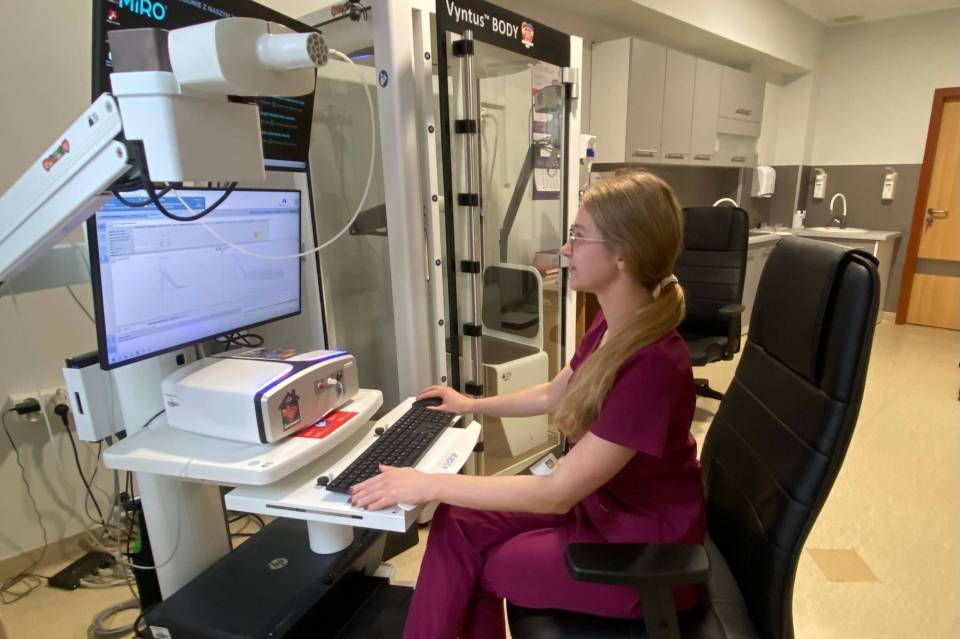 - Nowoczesny aparat Ventus One pozwala wykonywać spirometrię, pletyzmografię, spiroergometrię oraz badania dyfuzyjne płuc na jednym, wielofunkcyjnym urządzeniu. Oznacza to krótszy czas badania, większą wygodę dla pacjenta i bardziej precyzyjne wyniki- mówi Julia Kupisz, elektroradiolog ze szpitala w Łagiewnikach.
