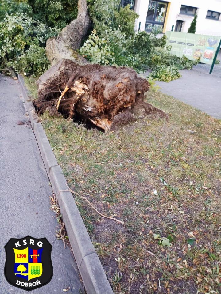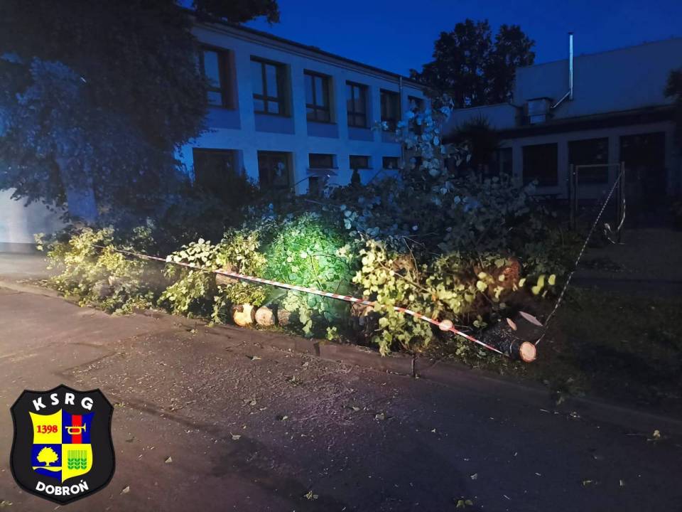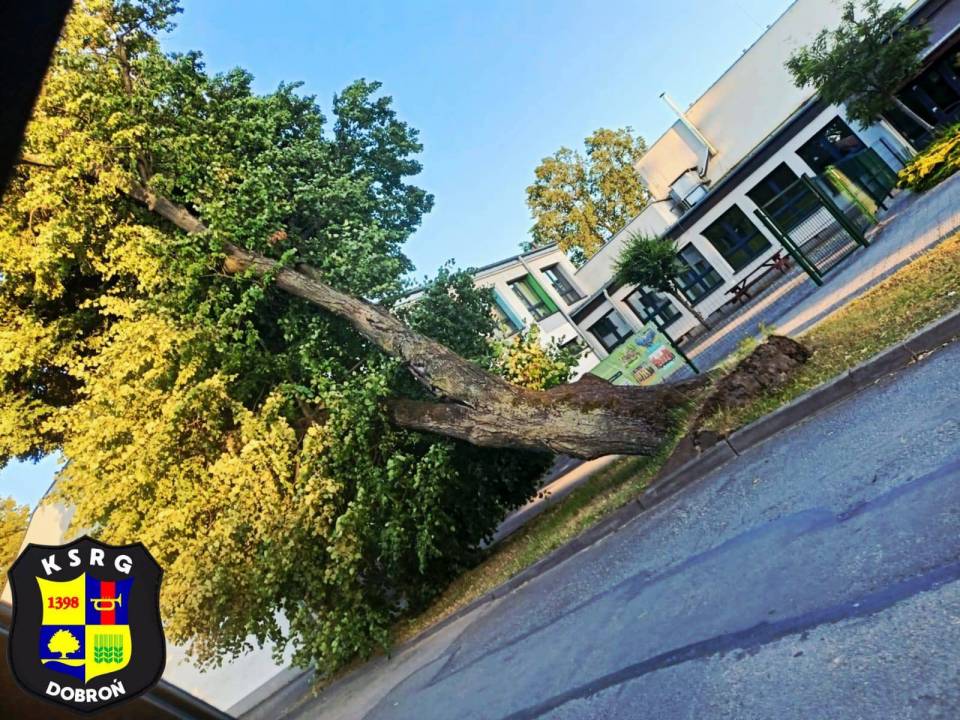 - Było naprawdę blisko – drzewo przewróciło się tuż przy budynku Szkoły Podstawowej w Dobroniu. Na szczęście nikt nie ucierpiał. Dziękujemy strażakom z OSP Dobroń i PSP Pabianice za sprawną akcję oraz Grzegorzowi Żychowskiemu (Obrona Cywilna, Ochrona PPOŻ) za szybką reakcję z ramienia Urzędu Gminy - zaznaczyli w mediach społecznościowych pracownicy UG Dobroń.