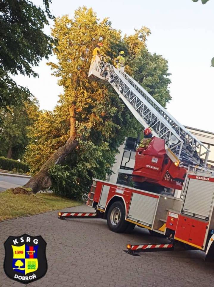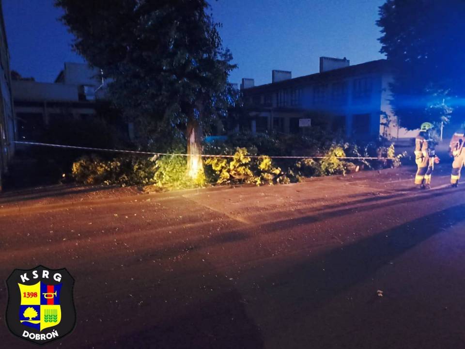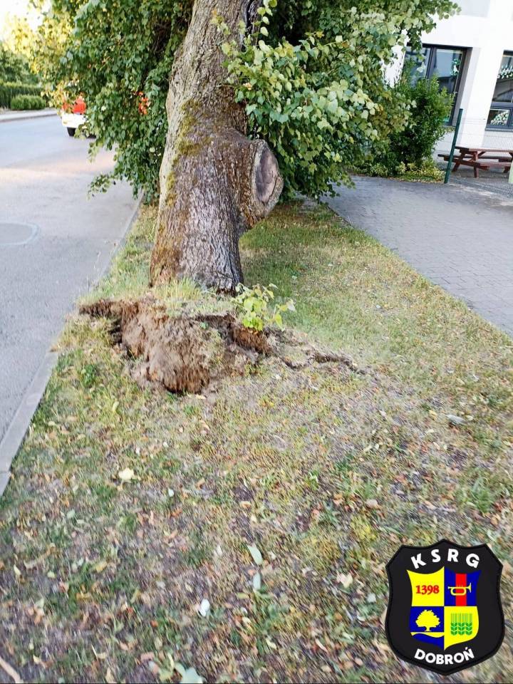 Do zdarzenia doszło w miniony czwartek, 19 czerwca wieczorem. O 20.01 do stanowiska kierowania PSP w Pabianicach wpłynęło zgłoszenie o przewróconym drzewie. Na miejsce natychmiast skierowane zostały dwie jednostki OSP KSRG Dobroń oraz zastęp z JRG Pabianice. Do działań włączył się również pracownik Urzędu Gminy Dobroń, Grzegorz Żychowski, reprezentujący służby Obrony Cywilnej i Ochrony Przeciwpożarowej.
