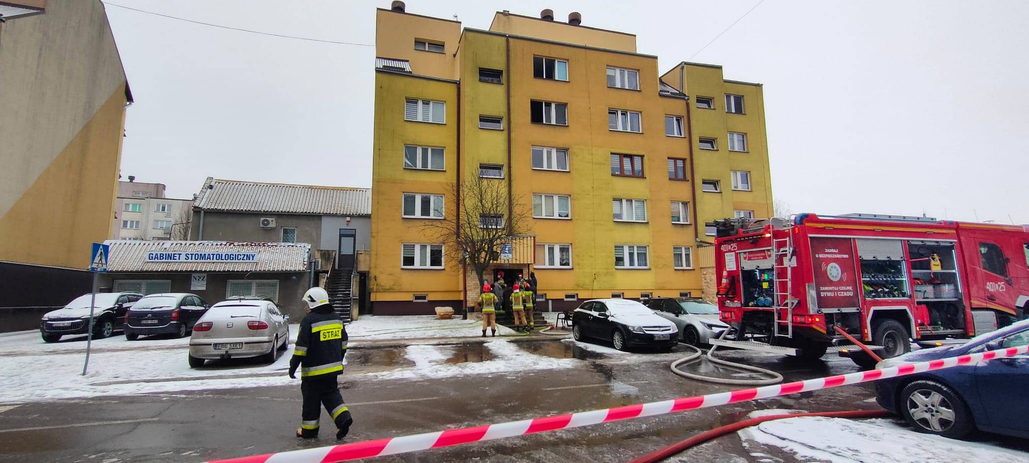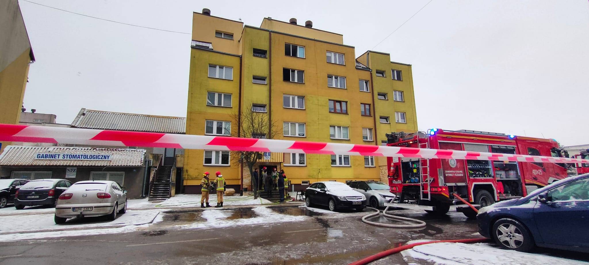 Informacja o zdarzeniu do stanowiska kierowania Komendy Powiatowej PSP w Bełchatowie wpłynęło o godzinie 9.25. Z bardzo wstępnych informacji wynika, że poszkodowana została jedna osoba - kobieta w wieku około 60 - 70 lat. Najprawdopodobniej kobieta została znaleziona w mieszkaniu nieprzytomna. Na miejscu prowadzono czynności ratunkowe, w tym resuscytację krążeniowo-oddechową.