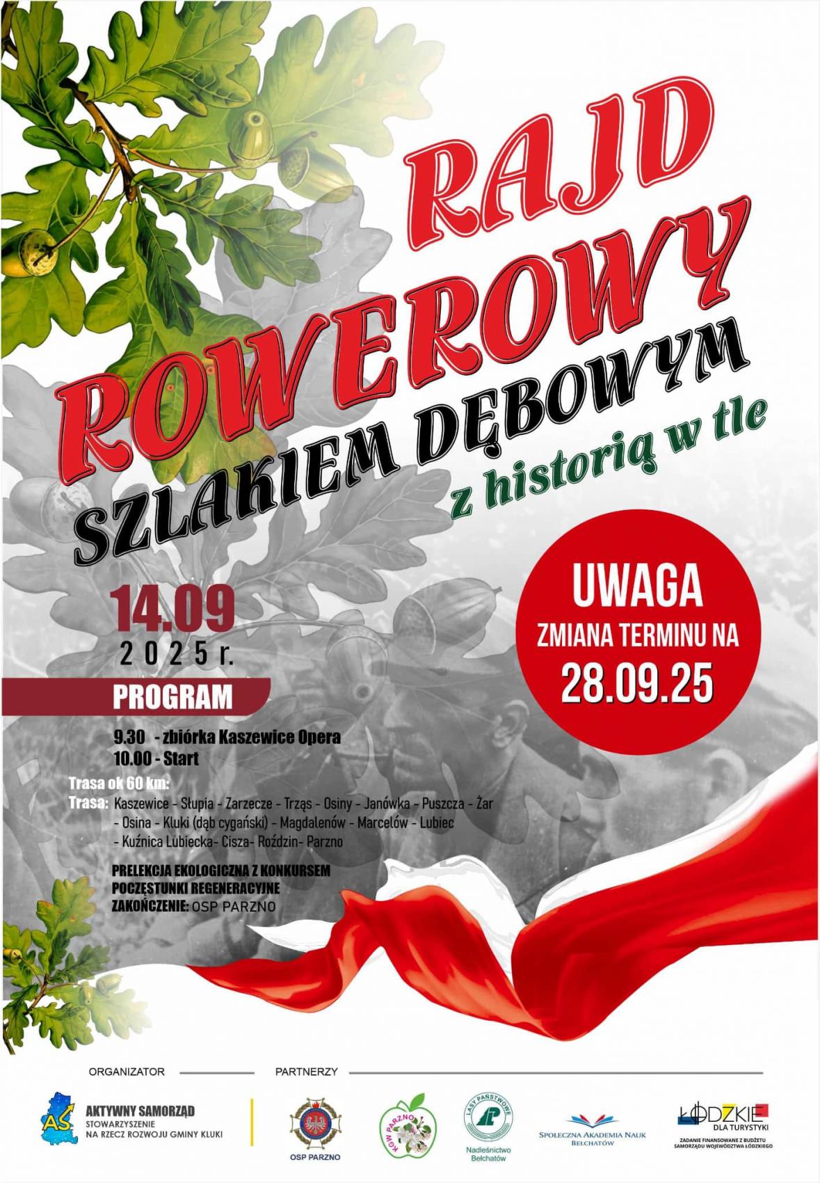Rajd Rowerowy po gminie Kluki to inicjatywa Stowarzyszenia Aktywny Samorząd, które realizuje projekty angażujące mieszkańców. Wydarzenie wspiera Urząd Marszałkowski Województwa Łódzkiego w ramach programu "Łódzkie dla turystyki", a wśród partnerów znajdują się m.in.: OSP Parzno, Koło Gospodyń Wiejskich z Parzna, Nadleśnictwo Bełchatów oraz Społeczna Akademia Nauk.
