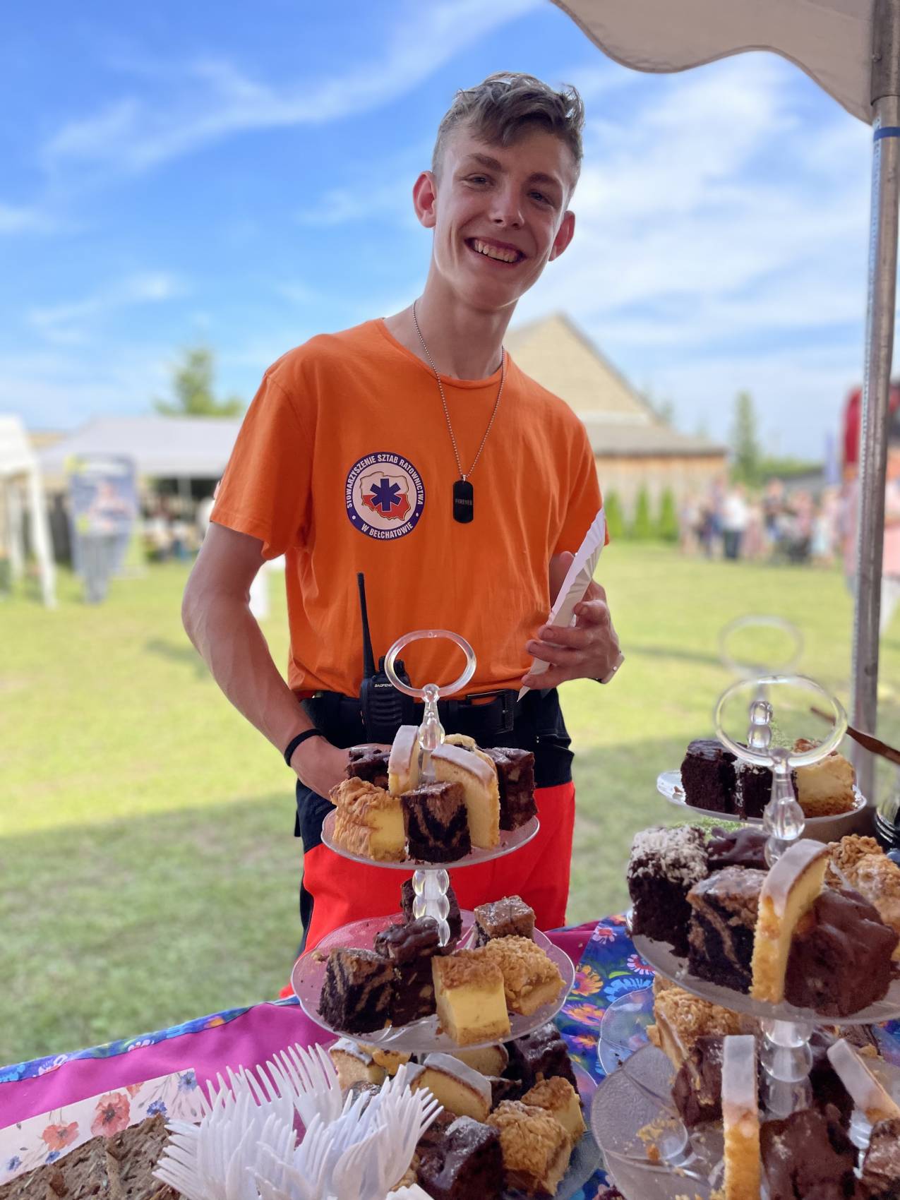 Jednym z najważniejszych elementów Dnia Sąsiada od samego początku są kulinaria. Stoły uginały się od domowych wypieków, swojskich wędlin, chrupiącego chleba ze smalcem i kiszonym ogórkiem. Nie zabrakło też tradycyjnej, długo wyczekiwanej grochówki z kuchni polowej, serwowanej prosto z ogromnego garnka – dania, które dla wielu stało się symbolem tego wydarzenia.