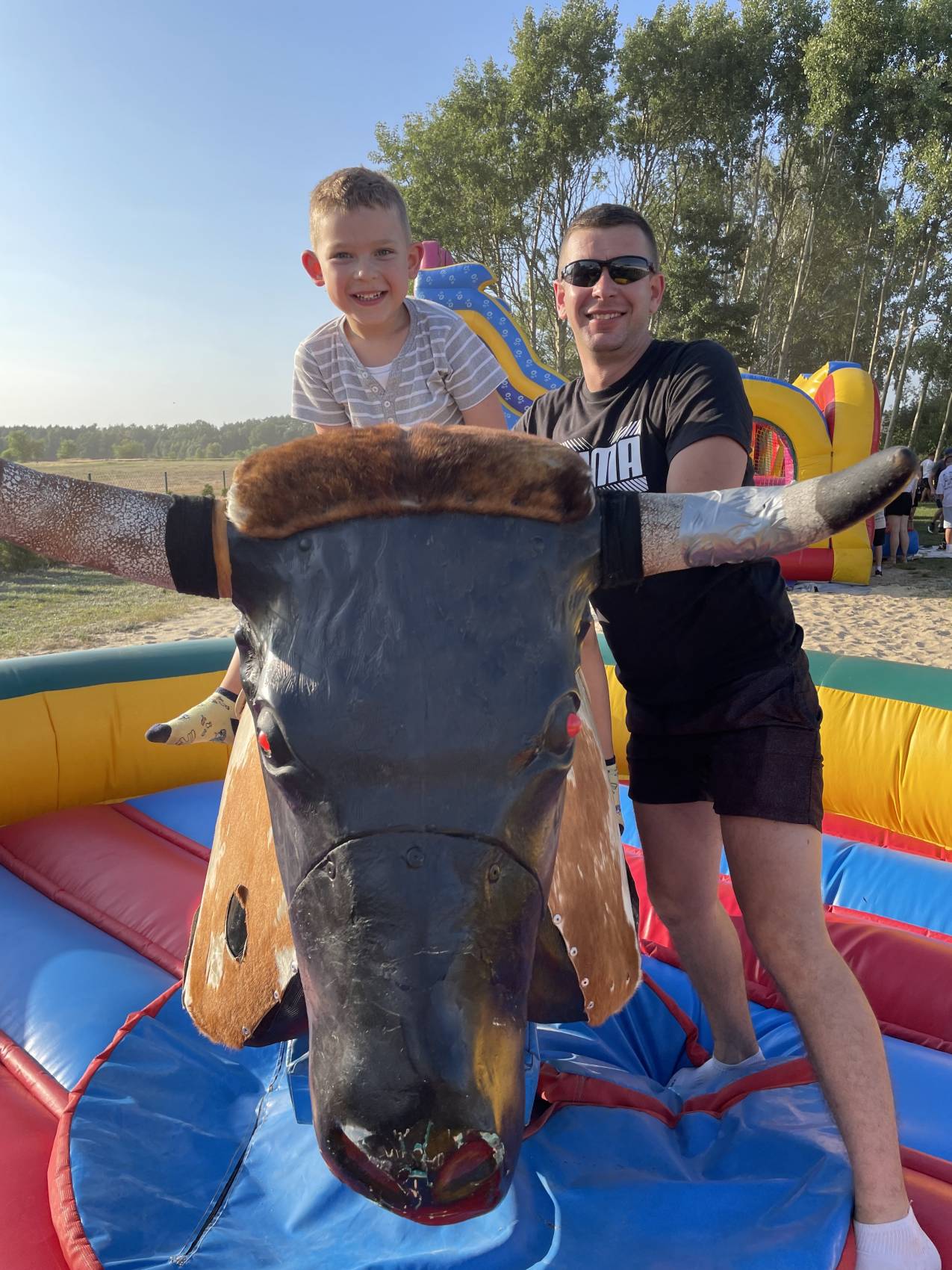 Ratownicy, strażacy i... bykDla spragnionych emocji nie zabrakło również atrakcji z przymrużeniem oka – konkurs jazdy na byku, rzut snopkiem, a także niecodzienna okazja do przejażdżki monster truckiem, która wzbudzała szczególne emocje wśród najmłodszych.