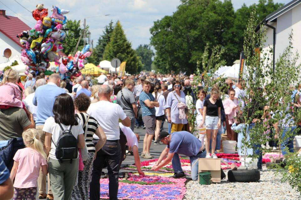 Uroczystość Bożego Ciała w tej niewielkiej miejscowości rozpoczyna się jeszcze przed świtem – nie od procesji, lecz od wspólnej pracy. Dłonie dorosłych i dzieci pochylają się nad ziemią, by z płatków kwiatów stworzyć barwne wzory i religijne symbole.