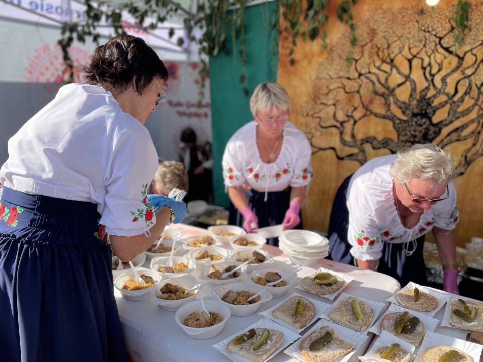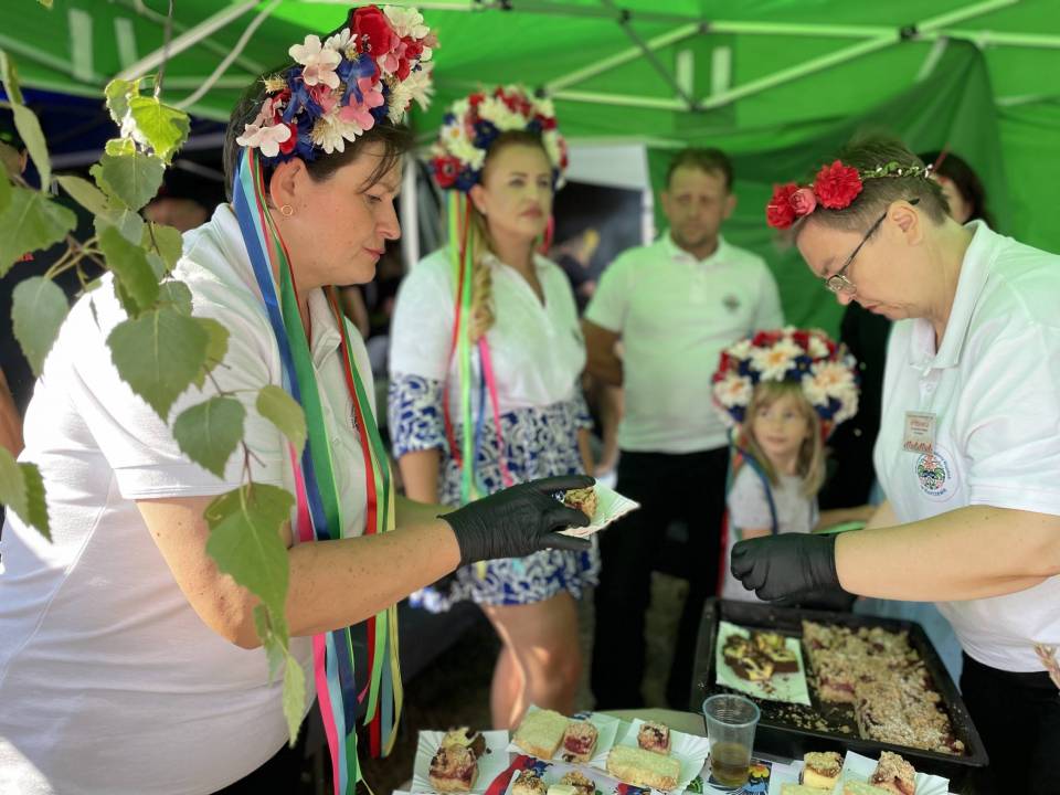 Jednak dożynki to nie tylko piękne tradycje, ale i doskonała okazja do świętowania w bardziej nieformalnej atmosferze. Na gości czekało aż 17 stoisk z lokalnymi przysmakami, przygotowanymi przez koła gospodyń wiejskich. Aromaty domowych ciast, regionalnych potraw i rozmaitych przekąsek przyciągały tłumy. Swoje kulinarne umiejętności zaprezentowały m.in. panie z KGW w Oleśniku, Porębach, Bukowej, Dobrzelowie, Kałdunach, Janowie, Korczewie, Wólce Łękawskiej czy Zdzieszulicach Dolnych. Stoły uginały się od smakowitości, a każdy mógł znaleźć coś dla siebie.
