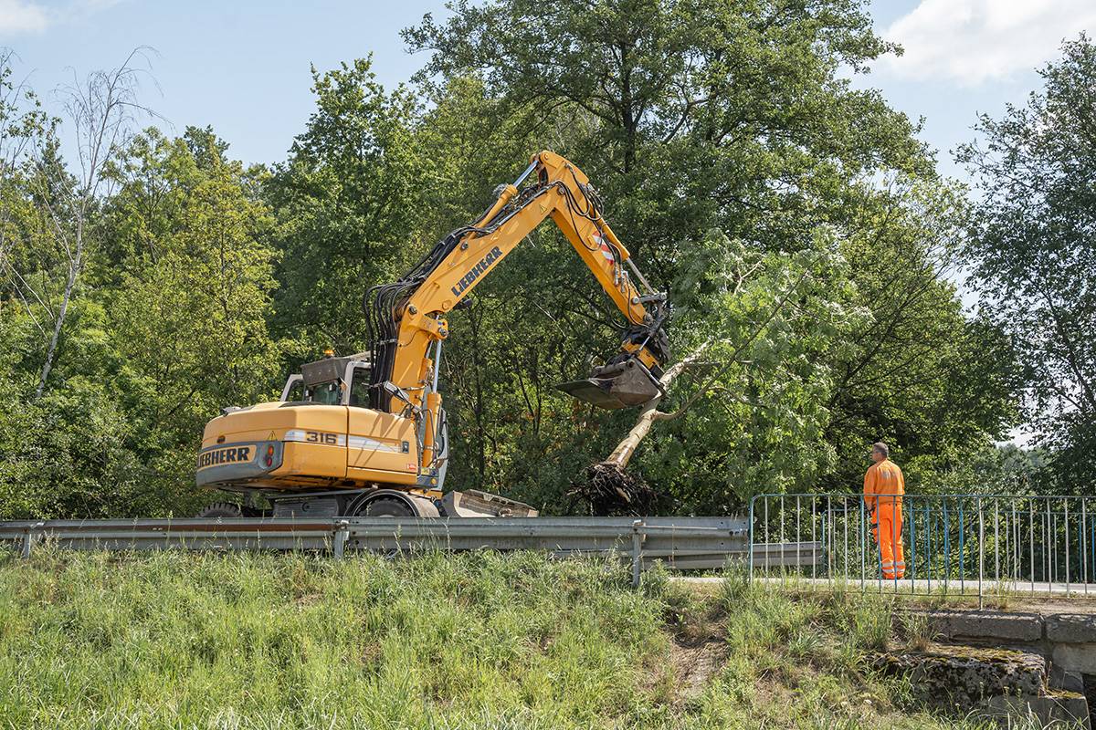 Aktualnie trwają roboty przy budowie drogi dojazdowej do planowanego, tymczasowego obiektu, który ma zostać wybudowany i udostępniony dla ruchu zanim rozpoczną się roboty rozbiórkowe na starym moście. Drogowcy usuwają także w ciągu drogi kolizje teletechniczne.