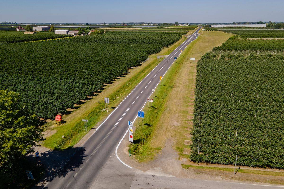 Przejeżdżając drogą wojewódzką 725 trafiasz prosto do serca gminy Biała Rawska – krainy owoców i słońca, gdzie jabłonie ciągną się aż po horyzont, a powietrze pachnie latem. Zatrzymaj się w Białej Rawskiej – odwiedź neorenesansowy pałac w Woli Chojnacie, miejsce z niezwykłą historią miłosną w tle. Spaceruj po okolicznych parkach pełnych starych lip, modrzewi i kasztanowców. Zajrzyj do romantycznego zameczku z XIX wieku i poczuj klimat dawnych czasów.