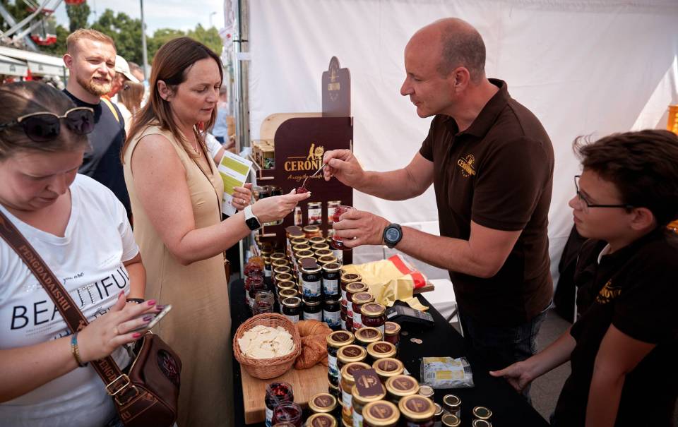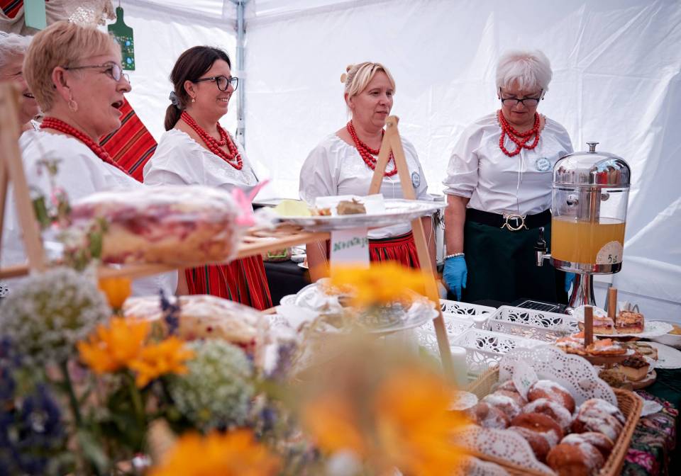 Wśród wystawców było wiele KGW oraz producentów regionalnej, tradycyjnej żywności. Ich stoiska kusiły pierogami z różnorodnym farszem, żurkiem na prawdziwym zakwasie, rzemieślniczymi serami czy domowymi przetworami. Smaki i aromaty przyciągały gości jarmarku a produkty oraz potrawy błyskawicznie znikały. - Wystawialiśmy się dzisiaj ze świeżonką, bigosem i pierogami z mięsem i kapustą, mamy też duży wybór ciast. Jest bardzo duże zainteresowanie, bardzo dużo chętnych, świeżonka już się skończyła – przyznał ok. godz. 16 Norbert Dudek z KGW Pod Lipami z Koła w pow. piotrkowskim. Gospodynie z KGW Chorki z pow. łęczyckiego do Łodzi przyjechały z prażokami, karkówką w sosie i żurkiem chorkowskim. Jak zdradziła Dorota Suchocz z koła, zupa jest robiona według bardzo starego przepisu przekazywanego z pokolenia na pokolenie. – Podstawą jest zakwas chorkowski z mąki żytniej z dodatkiem skórki chleba, kisi się go 7 dni – mówi.