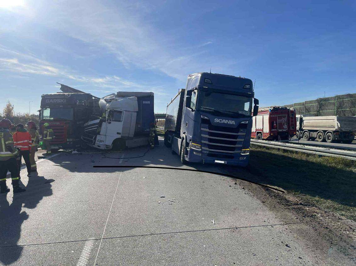 Zderzenie dwóch ciężarówek na A1 pod Natolinem – kierunek Gdańsk zablokowany!