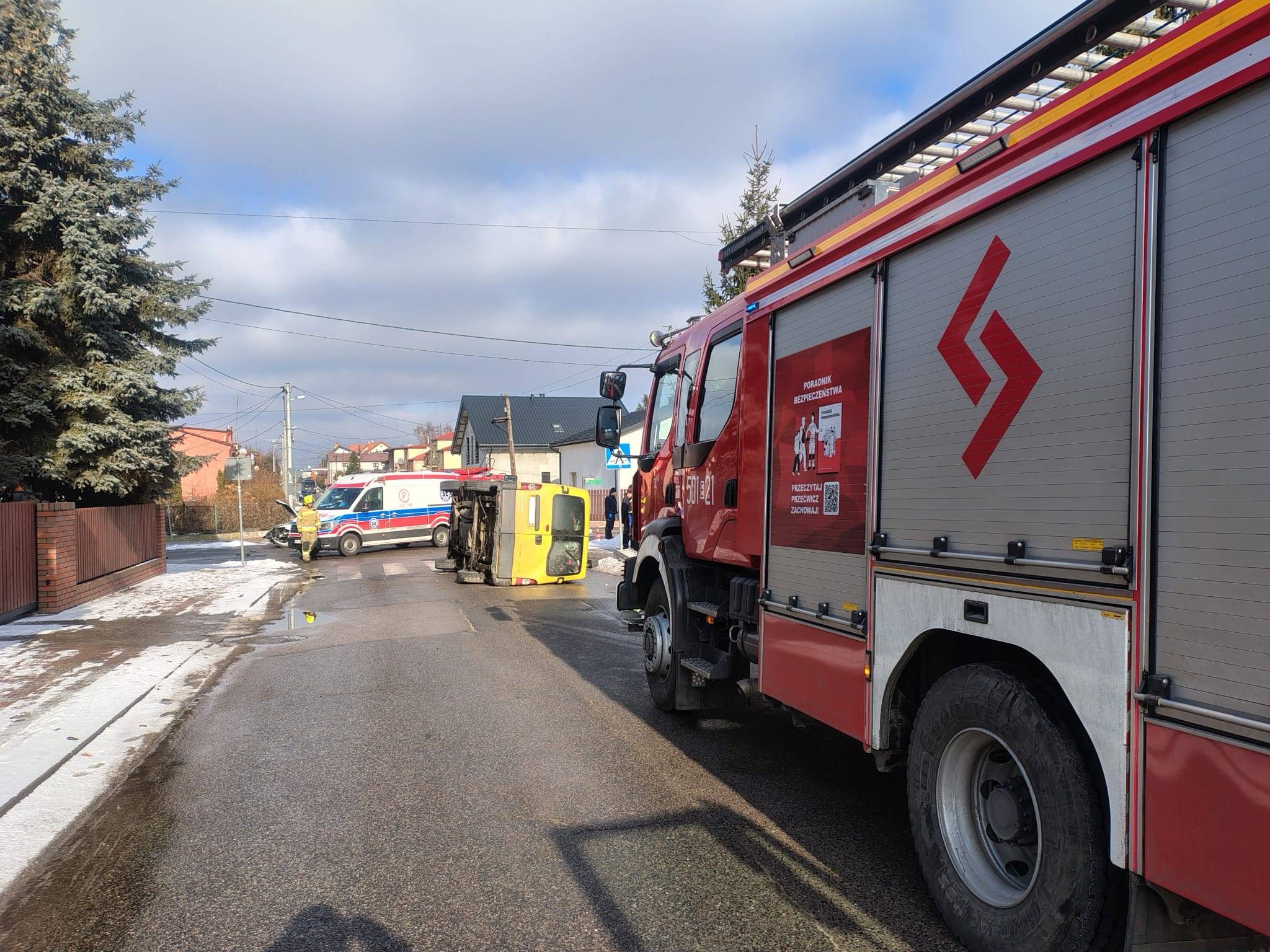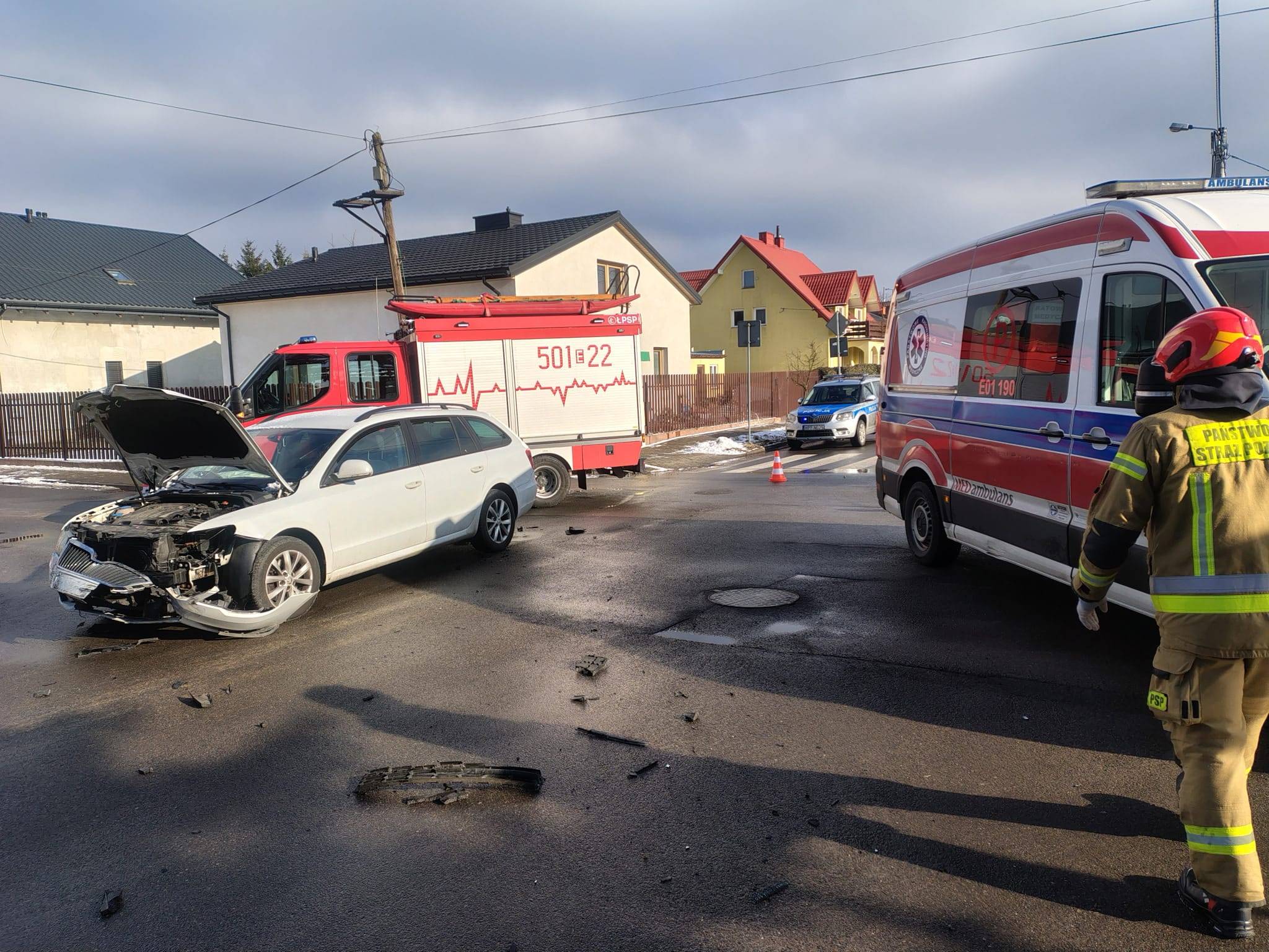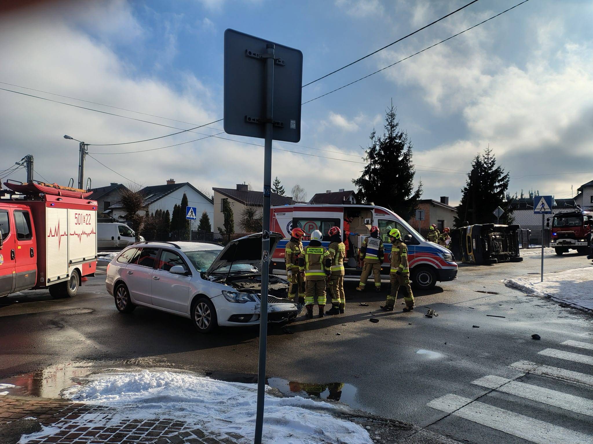 Straż pożarna zabezpieczyła miejsce zdarzenia, odłączyła zasilanie w uszkodzonych pojazdach oraz usunęła skutki wypadku, aby przywrócić bezpieczeństwo w ruchu drogowym. Przez pewien czas w rejonie skrzyżowania występowały utrudnienia w ruchu.